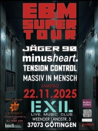 EBM Super Tour mit: Jäger -0 – Minusheart – Tension Control – Massiv in Mensch