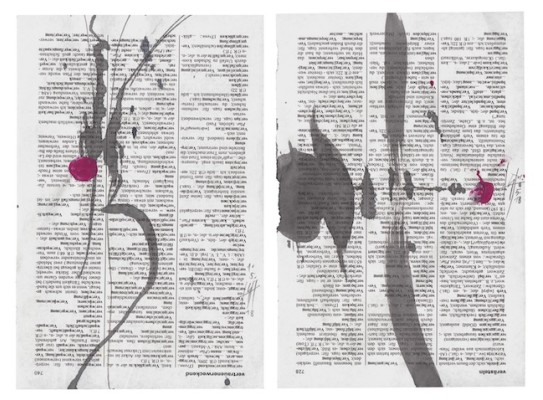 Als weiteres Beispiel einer künstlerischen Auseinandersetzung mit einem Phänomen, sei hier die Serie „Duden“ genannt. Hoppenstedt hat auf den Seiten eines alten Exemplars der Rechtschreiblehre, das als Musterbeispiel der Systematik der Begrifflichkeit gelten darf, seine Subjektivität entgegen gesetzt und auf diesen Seiten mit Tusche und Zeichenfeder dem intuitiven Impuls des spontanen künstlerischen Arbeitens nachgegeben und dabei ein Feuerwerk der Ideen entzündet.