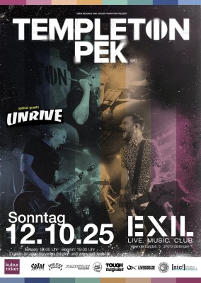 Mit ihrem energiegeladenen Mix aus Punkrock und Alternative reißen Templeton Pek das Publikum mit – hymnisch, wuchtig und kompromisslos. Fans von melodischem Hardcore dürfen sich auf ein intensives Live-Erlebnis freuen.