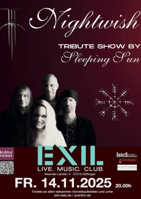 Deutschlands einzige Nightwish Tribute Band SLEEPING SUN kommt erstmals zu einem atemberaubenden Konzert nach Göttingen: ‚Einzigartig!‘ oder ‚Speerspitze des Symphonic Metal‘ sind nur zwei Attribute, mit denen die Band Nightwish aus Finnland oft umschrieben wird und die weltweit die großen Konzerthallen noch immer im Handumdrehen füllt.