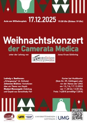 Die Camerata Medica Göttingen verbindet seit vielen Jahren musikalisches Engagement mit studentischer und wissenschaftlicher Gemeinschaftskultur. Das Sinfonieorchester der Medizinischen Fakultät gestaltet sein Weihnachtskonzert traditionell mit einem abwechslungsreichen Programm, das sowohl orchestrale Werke als auch solistische Beiträge umfasst.