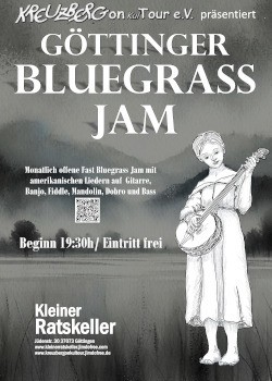 Der Göttinger Bluegrass Jam orientiert sich an der US-amerikanischen Bluegrass-Musik, die sich durch hohes Tempo, klare Songstrukturen und virtuoses Instrumentalspiel auszeichnet. Gespielt werden traditionelle Songs und Instrumentalstücke, die im gemeinsamen Spiel immer wieder neu variiert werden. Typische Instrumente sind Banjo, Fiddle, Mandoline, Gitarre, Kontrabass und Dobro. Charakteristisch ist das Wechselspiel von Gesangspassagen und instrumentalen Soli, bei dem die musikalische Führung innerhalb der Runde wandert. Der Jam ist als offenes Format konzipiert. Ein erfahrener Kern von Musikerinnen und Musikern sorgt für Orientierung, während weitere Teilnehmende eingeladen sind, sich einzubringen, sofern sie mit der grundlegenden Jam-Etikette vertraut sind. Die Veranstaltung ist akustisch angelegt und findet ohne Bühne im direkten Austausch statt.
